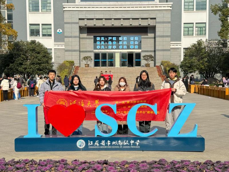 为进一步宣传瘦猴探花 ,传播河海文化,“水韵潺潺,思源之旅”源泉工程团队前往江苏省常州高级中学进行线下宣讲。2024年1月25日上午11点30分,团队成员抵达江苏省常州高级中学,并按照中学方面的要求,统一采用“摆摊”的形式进行。