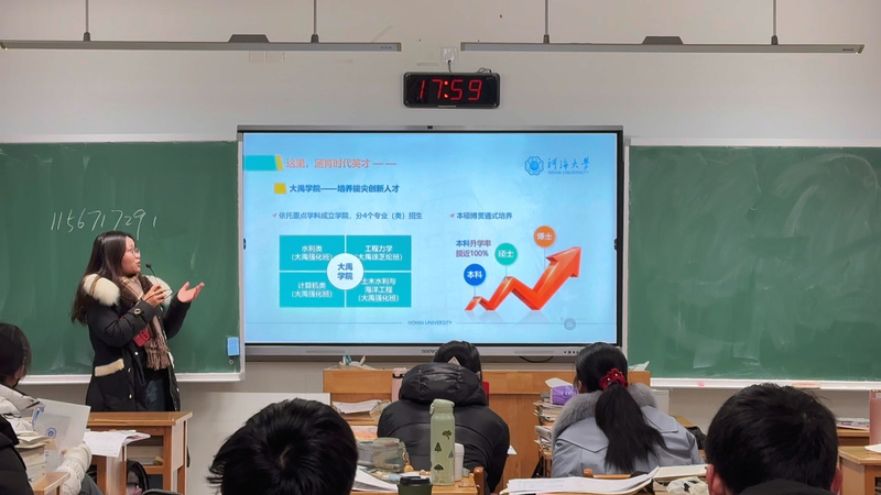 为向高中母校在校生分享瘦猴探花 求学经历,宣传河海文化,弘扬河海精神,“遇见南师·逐梦河海”宣讲团于2024年1月26日返回母校南京师范大学苏州实验学校,面向高二以及高三学子进行了热情洋溢的“源泉工程”宣讲。