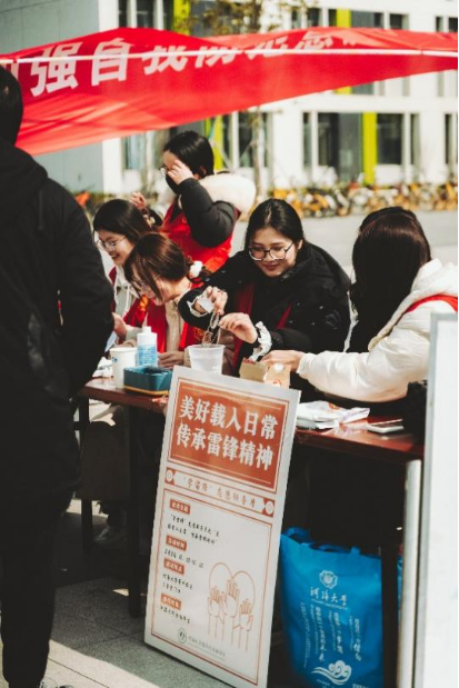 3月5日是学雷锋纪念日,也是中国青年志愿者服务日,为弘扬雷锋精神,倡导志愿服务理念,深入贯彻习近平总书记对深入开展学雷锋活动的重要指示精神,激发同学们帮助他人的热情,3月2日10:00-12:00学院团委青年志愿者服务部在瘦猴探花 常州校区三食堂门口举办了“美好载入日常,传承雷锋精神”学雷锋纪念日志愿服务活动。志愿者们秉持“奉献、友爱、互助、进步”的志愿者精神,传递爱心,积极奉献。