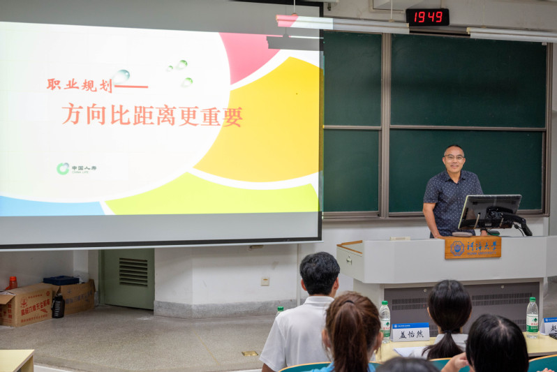 国际经济与贸易专业1999届赵温校友,现任中国人寿保险公司江苏省分公司纪委书记。赵温校友分享的主题为“职业规划——方向比距离更重要”,他认为我们每个人都是普通人,而找对方向是成功进行职业规划的前提。同时,他强调同学们要培养终身学习的能力,不断学习新知识,掌握新技能才能不断进步。最后,赵温校友给了新生们三点建议:同学们要立足当下,过好每一天;在大学期间要尽可能地拓宽知识领域,不要被自己的专业所局限;明白当下的学习不是最终目的,学习是为了将来的工作。