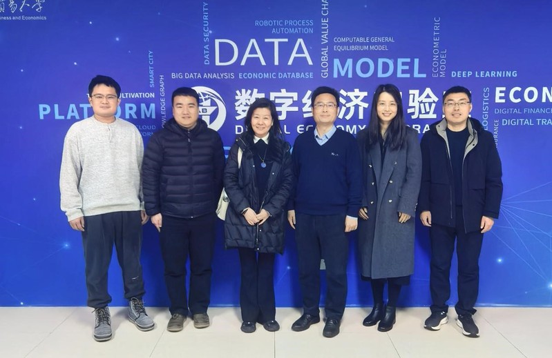 对外经济贸易大学数字经济实验室于2019年由国家发改委和教育部批复成立,是在全国文科类院校中设置的首个国家级实验室。在对外经济贸易大学,实验室主任杨军教授对李娜书记一行表示欢迎。实地考察期间,实验室办公室主任胡腾系统介绍了实验室“算力底座”硬件软件资源、自建数据库建设情况,以及在多源异构大数据处理、AI系统开发、经济仿真建模等领域的科研成果与应用场景。杨军主任强调,实验室正加速AI与经贸领域深度融合,构建教学、科研、育人一体化平台,其特色课程与“双导师制”为数字经济专业建设提供了宝贵经验;并就产学研协同育人机制构建等核心问题做了交流。