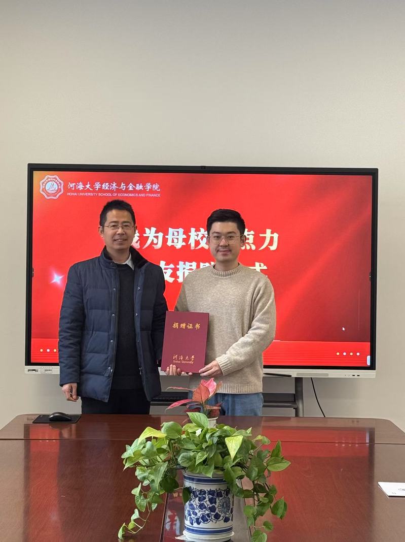 2024年12月13日,2017届国际经济与贸易专业校友梁文韬向学院捐赠绿植一批,助力学院建设。捐赠仪式上,梁文韬校友感谢母校四年来的培养和支持。他希望通过此次捐赠活动,能够带动和影响更多的毕业生、校友关心和支持母校事业发展,共同为建设母校美好未来添砖加瓦。庞庆华院长对梁文韬校友重回母校表示欢迎,对梁文韬校友“饮水思源 回馈母校”的慷慨捐赠表示衷心感谢。庞庆华院长指出,学院历届校友有责任、有担当,在各行各业成就斐然,母校深感欣慰并引以为荣,学院是校友永远的家。随后,庞庆华院长代表学院为梁文韬校友颁发了捐赠证书。