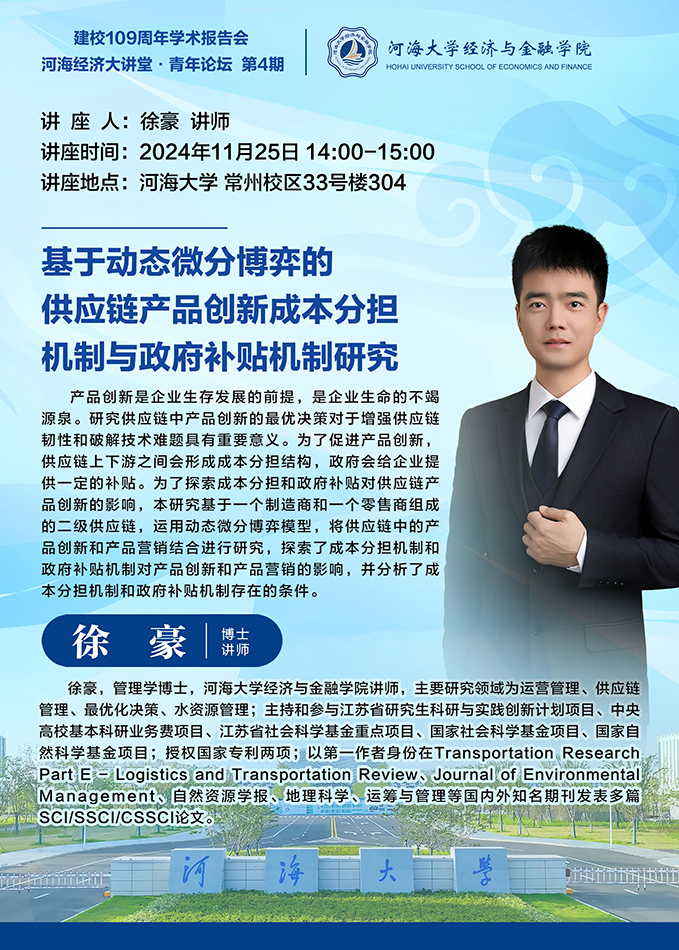 徐豪老师为本文的第一作者,商学院陈柳鑫教授为本文的合作者,水文水资源学院李琼芳教授为本文的通讯作者。内容摘要:跨界流域的水污染治理能够改善流域内的水生态环境质量,缓解流域内的水资源冲突,是实现区域健康稳定发展的重要保障。流域生态补偿是解决跨界流域水污染问题的一个重要手段,且在中国得到了广泛应用。本文构建了四种情景下跨界流域生态补偿的微分博弈模型:(1)无生态补偿情景,(2)上游单向生态补偿情景,(3)下游单向生态补偿情景,(4)上下游双向生态补偿情景。研究了不同情景下的最优