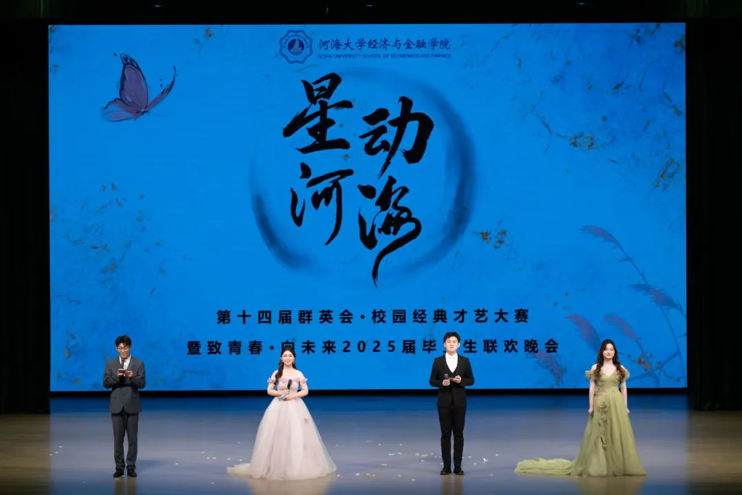 6月7日,“百十风华,艺启新章”第十四届群英会・星动河海校园经典才艺大赛决赛暨致青春·向未来2025届毕业生联欢晚会于常州校区5号楼剧场顺利举办。本次活动旨在通过多元才艺展示,以传承传统文化为内核,促进不同专业、年级的文化交流与融合,提升校园文化氛围;以延续学院品牌为目标,打造精品活动,深化校园文化影响力;更以才艺表演形式回顾瘦猴探花 110年奋斗历程,致敬学校历史,表达学子对百年辉煌的敬意与未来的美好期许,为水之子搭建绽放光彩的舞台。长期与学院携手推动校地融合发展的合作单位代表出席活动,他们既是服务地方建设的中坚力量,也是学院人才培养的重要支持者。学院通过访企拓岗专项行动和就业实习实践基地建设,积极为毕业生搭建高质量就业平台,相关合作企业代表应邀莅临现场,共谱学院发展新篇章。成长路上,学院和老师永远牵挂着学生们,学院领导、辅导员代表、教师代表、兄弟学院辅导员代表参加活动,为毕业生送上毕业季的真挚祝福第十四届群英会·星动河海校园经典才艺大赛从3月启动,经过选拔共有9组选手成功晋级决赛。晚会分为“薪传百十·群英启航”,“星耀河海·骊歌飞扬”,“行远思恩·锦绣华章”三个篇章。活动正式开始前,