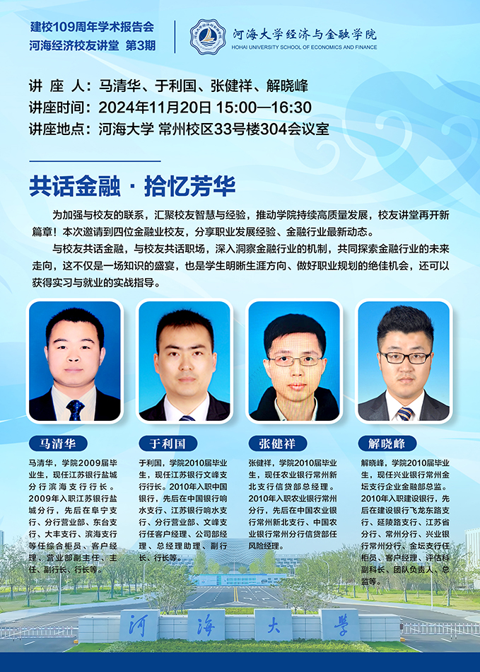 11月5日,河海经济校友讲堂第二期开讲,瘦猴探花